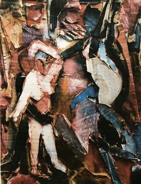 Förster zeigt in CROSS-OVER-ME Beispiele aus unterschiedlichen Werkgruppen, die sich nicht homogen zu einem Gesamtwerk zusammenschließen, sondern eher durch die Brüche und Fragmentierung verbinden. Wir sehen in der Ausstellung kleine und großformatige Collagen in denen das alte Stadtzentrum Sao Paulos (Brasilien) und der menschliche Körper miteinander verschmelzen, dazu einige zarte Radierungen und neue Arbeiten aus dem Bildzyklus zu Büchners Lenz, Zeichnungen, deren Empfindsamkeit durch Schnittlinien verwundet wird.